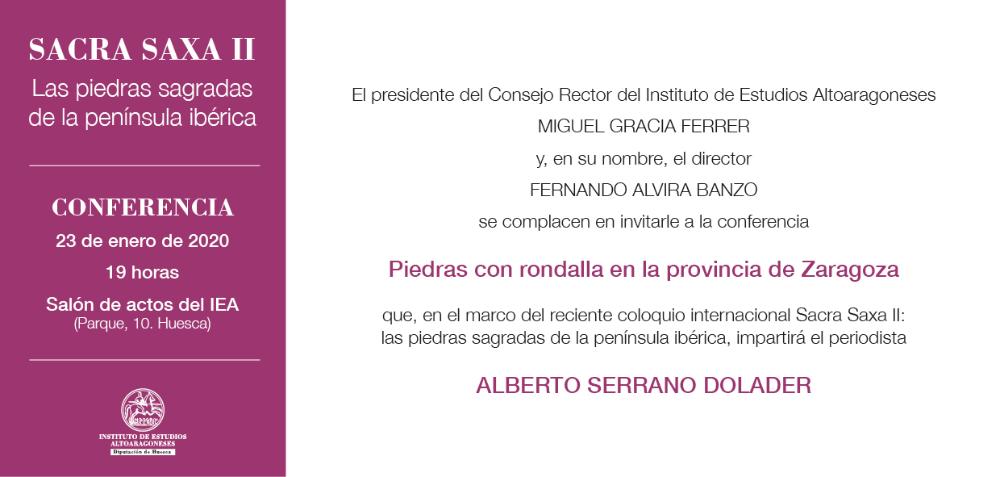 Conferencia Piedras con rondalla en la provincia de Zaragoza que, en el marco del reciente coloquio internacional Sacra Saxa II: las piedras sagradas de la península ibérica, impartirá el periodista Alberto Serrano Dolader.